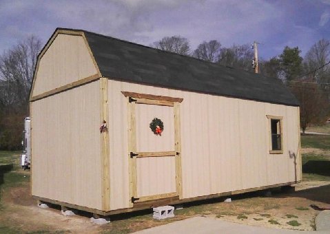 Bill and the lads worked at break neck speed on Saturday, and had my shed done in no time. I spent Sunday filling it up. It looks great.John B.